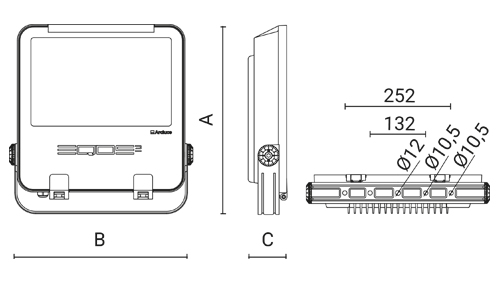 asimmetrica Imax=60° | 200W | 20600lm | 4000K | 80 | ON/OFF | 449mm | 435mm | 91mm |