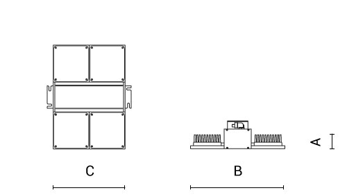 | Codice | Ottica | Watt | Lumen | CCT | CRI | Controllo | A | B | C | |