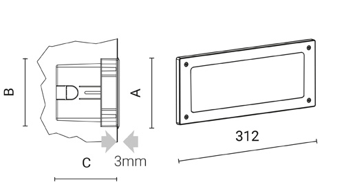 asimmetrica Imax=23° | 8W | 325lm | 4000K | 80 | ON/OFF | 127mm | 121mm | 110mm |